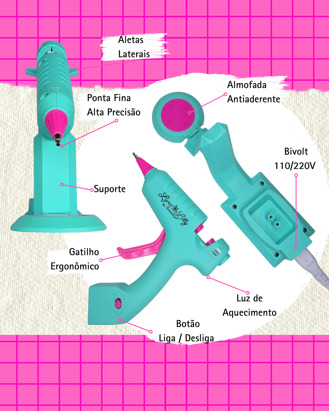 Leve seus artesanatos para outro nível com a Pistola Lynn Lilly. Precisa, sem fio e cheia de estilo!